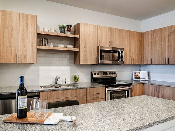 - Exterior features: 1 and 2 bedroom apartments, Availability 24 Hours, Barbecue, Basketball Court, Bicycle storage, Choice of two designer kitchen finish packages, Conference Room, Conference Rooms, Contemporary flat front cabinetry, EV Charing Stations, Electric vehicle charging stations, Energy efficient LED lighting, Expansive bathrooms with large vanities, Granite countertops, Kitchen island, Lawn, On-Site Maintenance, Open shelving to showcase glassware, Overhead lighting in all bedrooms, Private patios and balconies, Sleek plank flooring, Stainless steel appliances, TV Lounge, Tile backsplash