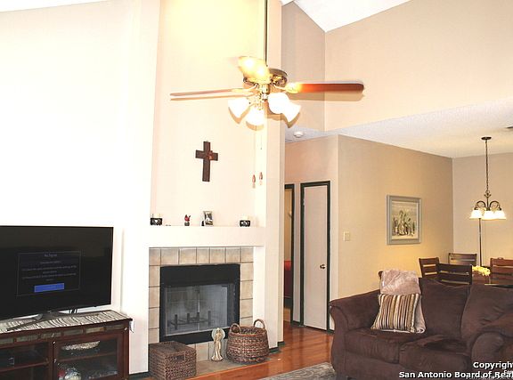 Beautiful home in established neighborhood and desireable zip code. High ceilings, open floor plan. Large master bedroom with unique bathroom setting. Recent renovations include paint, tile flooring in bedrooms and bathrooms and refinished wood floors in living areas. Has concrete deck, new wood fence in courtyard & beautiful landscaping w/total sprinkler system throughout yard. Covered patio is perfect for entertaining. Roof is approximately 5-months old. Near schools/shopping/bases.