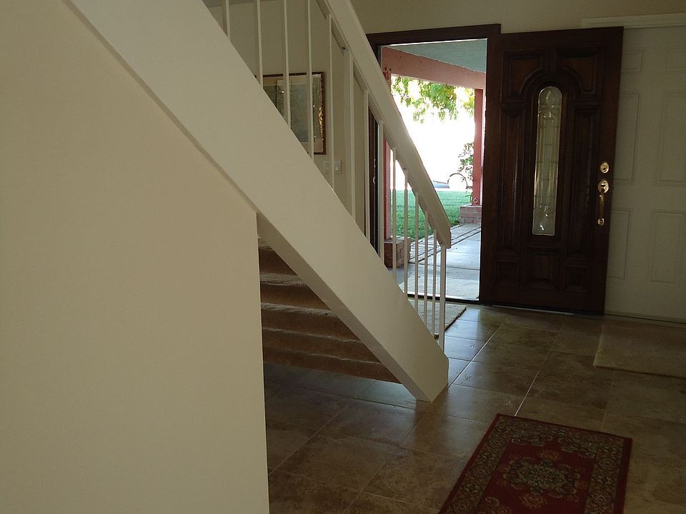 Beautiful 4 bedroom 3 bathroom pool home in a quiet peaceful cul de sac. Two car garage with RV parking. Nice sitting area in front. Interior recently freshly painted. Walk in to a large living room. Great size downstairs bedroom and walk in closet with full bathroom. Beautiful kitchen with large counter top for entertaining. Nice size family room with fire place. Upstairs you fine 3 nice size bedrooms and 2 bathrooms. Master bedroom with fireplace. Yes fireplace to be cozy in the cold winter nights. House has 2 fire places. If you like to entertain family and friends. This is the perfect home. As you walk out to the back yard you see a sparkling pool and spa. Heat control for pool and spa. Large back yard to entertain. This home has everything.