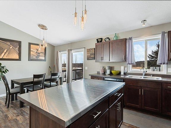 Enjoy sunsets from the west-facing deck of this beautiful Thomas Allen Home. Located on a large corner lot. This 4-bedroom 2-bath home is fully finished and ready for your family to enjoy. Custom stainless steel-top center island & custom lighting in the kitchen, in-ground sprinkler system are just some of the amenities this home has to offer. City park and playground 1/2 block away. Come see to appreciate!