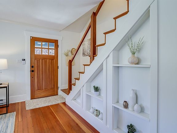 Charming storybook Craftsman on a quiet, walkable street near top-rated restaurants, coffee shops, and shopping. Light-filled living room features original fir floors, fireplace, and tree-lined views. Dining room with built-ins connects to an updated kitchen with stainless appliances, leading to a deck and fully fenced backyard. Main floor bedroom. Full bath blends period charm with modern updates. Spacious upstairs bedroom offers excellent storage. Finished lower level suits a rec room, guest suite, or WFH space. Laundry and more storage in unfinished basement. Stay comfortable year-round with newer heat/AC mini splits . 4800 sq ft lot with development potential. Pre-inspection and 2 bed/ 2 bath DADU plans available.