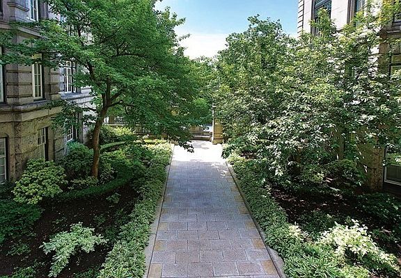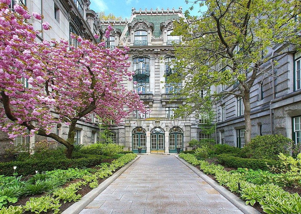 BROOKLINE ... The Stoneholm. Set back from Beacon Street overlooking the lush courtyard and ornate Beaux Arts architecture of the one-of-a-kind Stoneholm, this front, south-facing, floor through condominium offers more than 1,400 square feet of living space filled with unparalleled artisan detailing. The residence features multiple marble fireplaces, mahogany paneling, three-quarter height wainscoting, exquisite decorative molding, pilasters and lentils. The condominium's elegance is further enhanced by beautiful windows greater than six feet tall, beamed ceilings with heights of more than nine feet, and both pocket and French doors. The two bedroom, two bathroom unit also features an eat-in-kitchen, a formal dining room, built-in bookshelves, an original butlers pantry, an in-unit washer and dryer, portable air conditioner units, and on-site deeded parking.