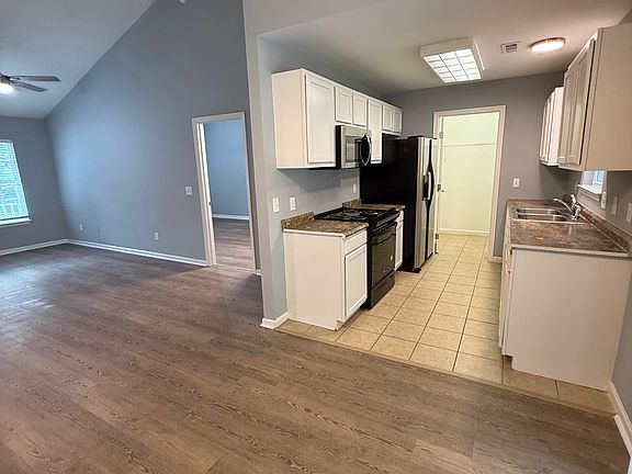 Welcoming high-ceiling entrance for a spacious feel. Luxury vinyl plank flooring and ceramic tile for easy care and durability. Modern stainless steel appliances: refrigerator, with a microwave over the range. Includes washer and dryer
