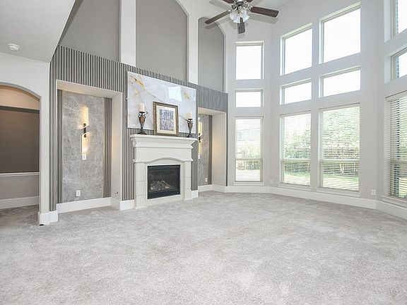 Welcome to this stunning home. This property shows off its breathtaking entrance with a view of gorgeous tall windows flooding the space with natural lighting from the high cathedral ceilings in the family room. It boasts a blend of tile & carpet flooring. The open concept features a beautiful stone fireplace w/mantle, exquisite wall lighting, ceiling fan, windows galore, subway backsplash, quartz countertops with beautiful dark grey front decor wood panel, tall dark cabinets, pantry, wet bar, stainless steel appliances, spacious master bathroom with separate shower/ deep soak tub with his and her vanities, large walk-in closet. Downstair master suite w/beautiful crown molding w/ view of backyard and patio. A stunning one of a kind staircase w/ decor wall panels that takes you upstairs to a spacious entertainment area awaits you with a game room & media room ready for movie night w/ popcorn & drinks to entertain friends & family that offer a stunning view of the open space downstairs.