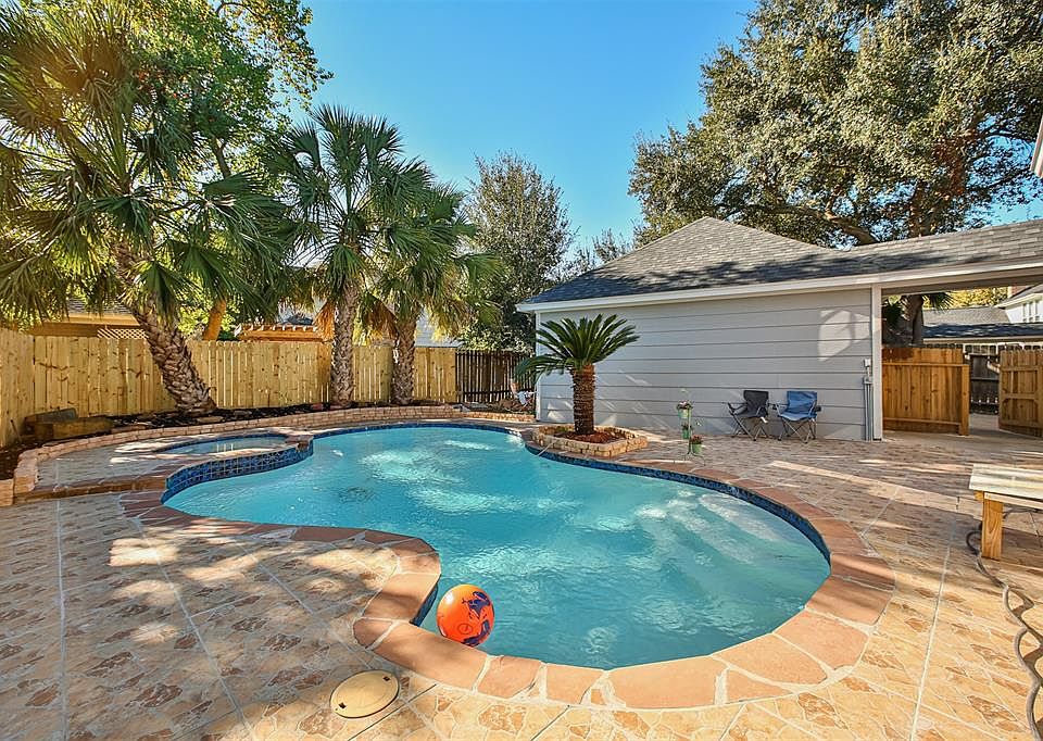 Gorgeous 4 bedroom home with over $100K in renovations located in the prestigious Nottingham Country subdivision. The 2-story entry with wood flooring leads to the study & formal dining room both with wood flooring and crown molding. The completely renovated island kitchen features quartz counters, marble flooring, stainless steel appliances and a breakfast area. Family room has wood flooring, crown molding, stone surround gas fireplace & dry bar. Lovely master suite with wood flooring and renovated bath featuring marble floors and counters, separate shower and jetted tub. Large game room located upstairs along with 3 secondary bedrooms and 2 full baths. Beautiful backyard with swimming pool & hot tub, tile decking, several palm trees and a detached 2 car garage.