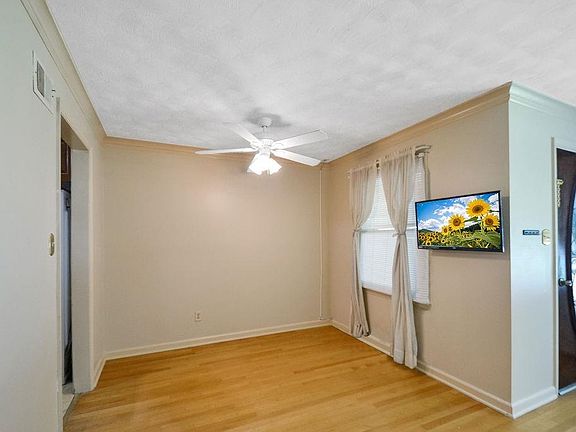 - Flooring: Part Hardwood, Part Carpet, Tile, Vinyl