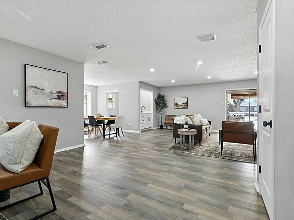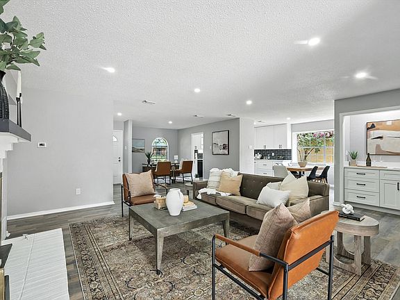 Inside, the home has been fully renovated with new flooring, fresh paint, updated cabinetry, stylish tile work, designer fixtures, and more. The open-concept floor plan connects the dining and living areas, highlighted by a large living room with a built-in wet bar for effortless entertaining. A huge bonus room with a convenient half bath offers endless possibilities for a game room, home office, or play space.