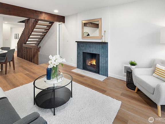 Perched atop of Queen Anne Hill, this beautifully remodeled townhome seamlessly blends modern upgrades with original charm. The ground level offers a spacious garage, laundry, guest room, and a private backyard. The main level is ideal for entertaining, boasting a cozy living room with a wood fireplace, two decks, a dining area, and an updated kitchen with quartz countertops, and stainless-steel appliances, including an induction range. Upstairs, you’ll find two spacious bedrooms and a full bathroom. Enjoy partial city views from the primary deck. Notable updates include new flooring, new roof, fresh paint, updated electrical, and plumbing. Walking distance to Queen Anne Ave's vibrant restaurants and amenities. This is a must see!
