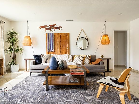 Welcome to this charming single-story home, where an open floor plan creates a warm and inviting atmosphere. The spacious living room, anchored by a gas fireplace, seamlessly flows into the dining area, perfect for gatherings both large and small. The kitchen boasts ample cabinetry, built-in appliances, and a convenient pantry, making meal preparation a delight. The primary bedroom offers a private retreat with an updated en-suite bathroom featuring a stylish tiled shower. Two additional well-proportioned bedrooms share a tastefully appointed bathroom. A versatile enclosed patio presents a multitude of possibilities. Imagine it as your personal home gym, a productive home office, or a dedicated laundry room – the choice is yours. Enhancing this home's appeal are desirable amenities such as central air and heat, energy-efficient dual-pane windows, water filtration system, driveway with EV charger, and the delightful presence of mature citrus trees.