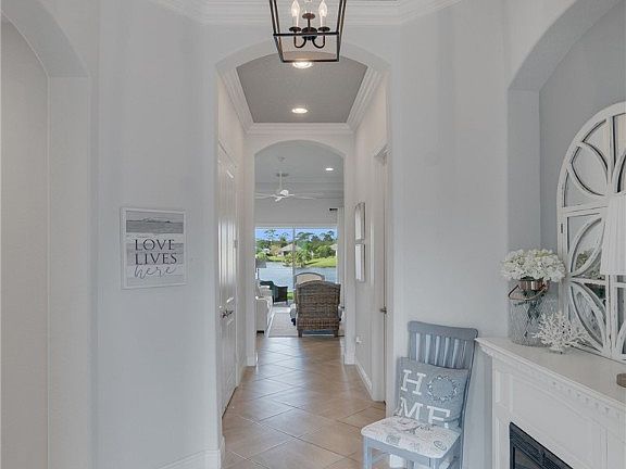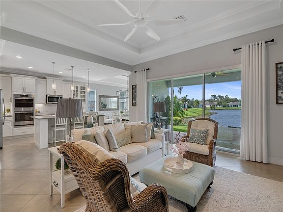 Decorator's Dream Home in the sweetest neighborhood of 82 homes, and you can't beat the location or the view! Located literally minutes to the heart of Vero, you could take a walk to get a bite at night or drive 15 minutes to the beach. This 2019 built home checks all the boxes, has over 2,000 sf, multiple tray ceilings, crown molding, top of the lake views (oh, the sunsets!!), a huge den (has doors & space for closet if you want 3BRs), a huge oversized garage, and the most beautiful porch from which to watch the wildlife. Community pool, fitness, lawn care included, gated comm, only $267/mo.