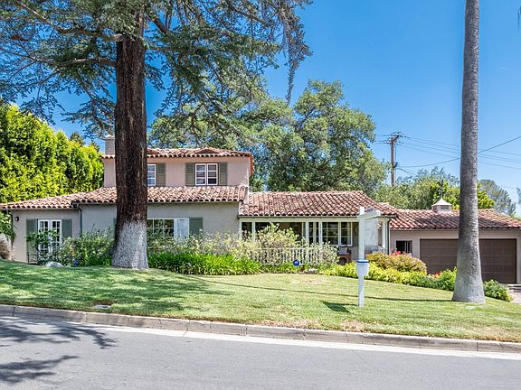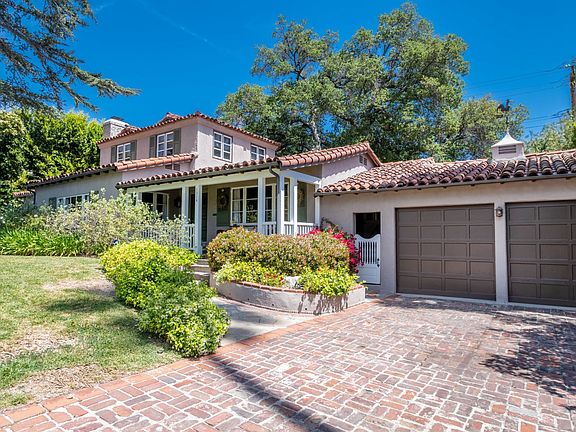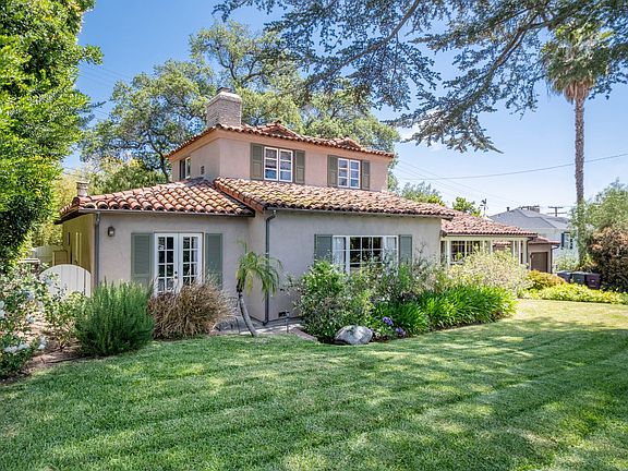 An enchanting Spanish Colonial Revival home residing in the sought-after Northwest Glendale! Just above Kenneth Rd, and walking distance to Kenneth Village, this gorgeous two-story property with an attached 2-car garage provides 4-beds, 3-baths & exquisite landscaping to impress even the most discerning visitor. All throughout the 2,595-sqft space are gorgeous wood floors, crown molding & unique built-in storage features. A bright entryway branches off to a formal dining room or easygoing living room with a fireplace. The rich wood of the coffered style ceiling adds a certain flare to this luminous family room & allows backyard access from French doors. Through a darling breakfast nook stylized in crisp wainscoting, discover this airy kitchen housing shaker cabinets, matching those of the adjacent laundry room, a subway tile backsplash, stone countertops & built-in stainless-steel appliances. Along the first floor, the main bathroom is detailed by vintage pink and gray tile with a separate shower stall & tub. Each bedroom, two on each floor, include built-in closet space. The primary bedroom suite is adorned by a warming fireplace & en-suite bathroom fitted with double sinks, glass shower stall & vintage seafoam blue tile. Outside, a backyard paradise--an open patio surrounded by wispy trees & fluttering greenery creates a dreamy escape for all who visit. Welcome Home!