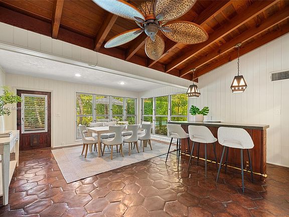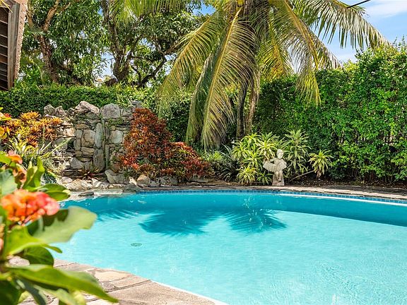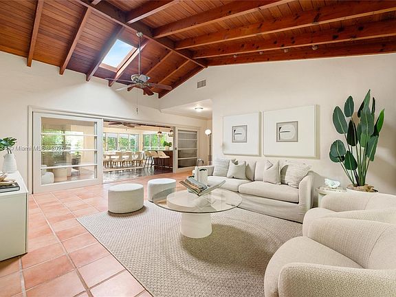 Tucked away on a lush lot in coveted Coral Gables, this meticulously maintained tropical oasis brims w/warmth, character & potential. Its premier location 1 blk from UM places this classic mid-century home in the heart of walkable Coral Gables. Tidy interiors feature: vaulted ceilings, crown molding; built-ins; tile floors; skylights & impact windows. Graciously scaled living rm. Family rm invites nature indoors. Updated kitchen w/Viking appliances & pass-thru to dining area. Primary suite boasts spa-style shower, 2 walk-ins & patio access; 2nd bdrm w/patio access + flexible extra space for 3rd bdrm or office w/ full bath. Beautiful resort-style backyard anchored by waterfall pool, deck & mature palms. Enchanting & timeless, this lovely little paradise is a hidden gem.