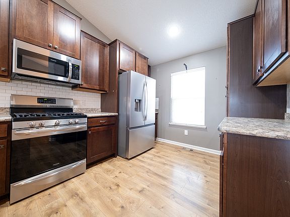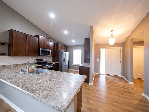 Luxury vinyl plank floorsVaulted ceilingsAbundance of natural lightStainless steel appliancesTiled backsplashLarge breakfast barIncredible kitchen