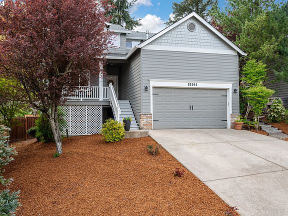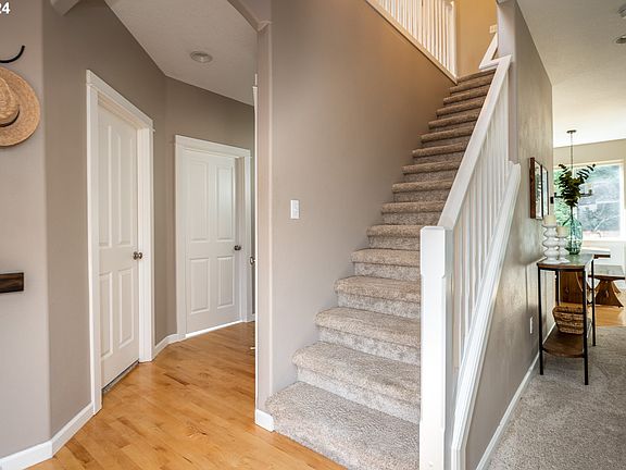 Welcome home to this tastefully updated Clackamas charmer located less than a mile from Rock Creek Middle and Clackamas HS. The wrap-around style floor plan drops you into an expansive living room with wall to wall carpet warmed by a gas fireplace. The ample space allows for a multitude of arrangements. The connected dining area will accommodate most large tables for big gatherings. An abundance of counterspace leaves room for additional seating at the breakfast bar if needed, as well as lots of space for several 'cooks in the kitchen' at one time. Garbage disposal, quartz counters, white cupboards and subway tile backsplash. Gaze upon the forest over the undermount sink while rinsing veggies for dinner. Hardwood floors provide a timeless look and durability. On the upper level you'll find three bedrooms, the primary being a massive room allowing space for a reading nook or a 2nd office space. Enjoy summers on a large deck with attached paver stone patio area that overlooks a grass yard. Trampoline can stay! Bottom line; this home offers a great opportunity to get into the Clackamas/Happy Valley area under $600k without needing to do a complete remodel before moving in. This home is move in ready with the major systems in great shape: 2021 New Roof & New W/H. New A/C in '23 with Furnace inspected and in great shape. Radon and sewer scope passed in '21. New back fence. Home Warranty included! Open House Saturday *** 4/6 & 4/7 12-2pm ***