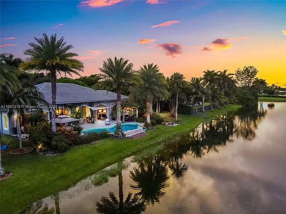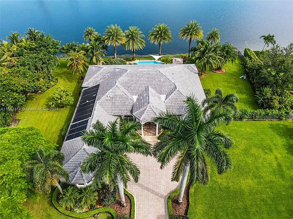A Home where love never fades and magic fills every moment ! Enjoy breathtaking 180-degree waterfront views, a new roof, and impact windows that bring in natural light while offering peace of mind. A stunning 4,732 sq ft home nestled on over 35,000 sq ft of lush land in the serene Vista Lakes, Davie, Florida. This 4-bedroom, 3.5-bathroom retreat is perfect for those seeking luxury and privacy. Dive into the solar-heated pool, cozy up by the firepit, or dine al fresco in the expansive outdoor space. The oversized master bedroom boasts electric window treatments, and the freshly painted interiors are move-in ready. A 3-car garage adds convenience to this bright and inviting family haven, ready to create your own love story.