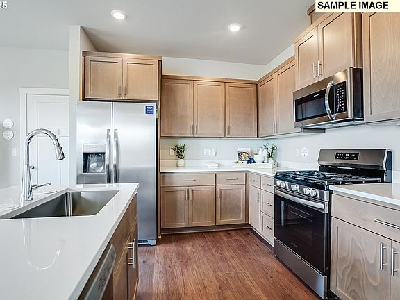 This new construction townhome is located in South River Terrace, just minutes from shopping, dining, golf, and scenic greenspace, with excellent schools and convenient freeway access. The Tumalo plan features a two-story layout with an open-concept first floor that connects the kitchen, dining area, and great room, while a versatile loft upstairs provides additional shared living space. Three bedrooms complete the second level, including the spacious primary suite with a spa-inspired bath and walk-in closet. Interior highlights include quartz countertops, shaker-style cabinets, stainless steel appliances, two-tone interior paint with painted trim, LVP flooring in the kitchen and entry, and LVT flooring in baths. This home also includes central air conditioning, a refrigerator, washer and dryer, and blinds—all at no extra cost! Located on homesite 3, this home is expected to be complete in fall 2025. Rendering is artist conception only. Photos are of a similar home, features and finishes will vary. Below-market rate incentives available when financing with preferred lender.