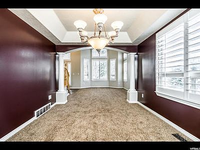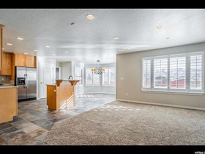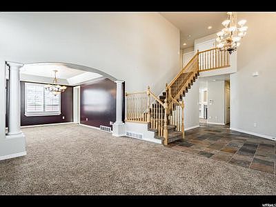 Move-in ready home with upgrades galore and breathtaking Wasatch Mountain views! Open and spacious, with a stunning two-story high living room and entryway, this house exhibits impressive architectural style and vaulted ceilings. Indoors, find white springs slab granite, newer stainless-steel appliances, plantation shutters, upgraded carpet, slate tile floors and surround-sound wiring on the main level and in the basement. Separate HVAC unit serves upstairs. Professionally-finished basement features a beautiful marble bathroom. Great house for entertaining, with a flat, fully fenced, east-facing backyard and spacious deck with built-in hot tub. RV pad behind drive-through gate. Oversized three-car garage with workbench and shelves. Cold storage in basement. Briar Crest Court boasts well-built, high-end, homes above the inversion. Easy access to employment, entertainment, trails and Uinta National Forest. HOA fee covers cable television, internet, rec center with gym, pool, and many community activities. SunCrest means school choice for kids