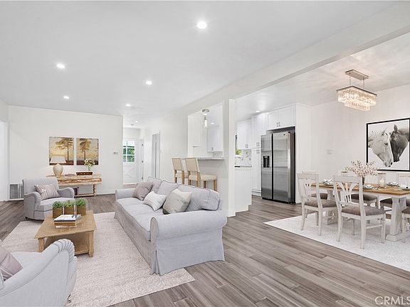 PRICE IMPROVEMENT. THIS CHARMING REMODELED MOVE-IN READY HOME! Bright and modern, featuring gorgeous neutral-toned engineered hardwood floors throughout. Open floor plan enhanced by beautifully redone wood burning fireplace and sparkling contemporary chandelier in the dining area. The galley kitchen has been completely remodeled with white shaker cabinetry, quartz countertops and stunning backsplash, along with stainless steel appliances. Recessed lights add to the sleek ambience of this 3 bedroom, 2 bath, 1402 sf home on a quiet cul de sac. Bathrooms have been impressively remodeled and are highlighted by new marble tiles in the showers, glass enclosures, modern vanities and new mirrors. From the light-filled den/office, a large slider opens to the lush, green backyard, perfect for outdoor entertaining and completely enclosed with slump stone walls and featuring a large covered lanai and beautiful landscaping. Indoor laundry room and 2 car attached garage add additional convenience to this incredible home. Get ready to move in, relax and enjoy the comfort, beauty and serenity of this stunning gem.