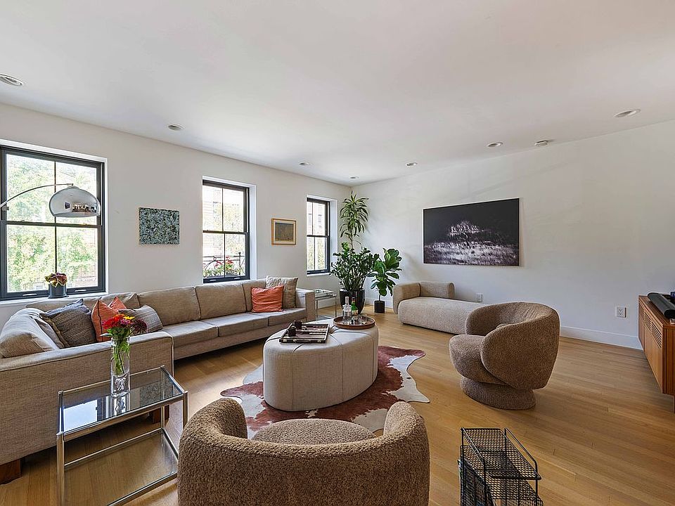 Set on a peaceful, tree‑lined block that connects directly to Prospect Park, the house was reconstructed with a modern living in mind, creating a seamless blend of everyday comfort and smart design. Upon entering, you’re greeted with a spacious entry foyer and custom oak stairs that lead up to a space that reads like a single‑family home. The main living floor opens to a massive, commanding, sun‑drenched living room at the front.