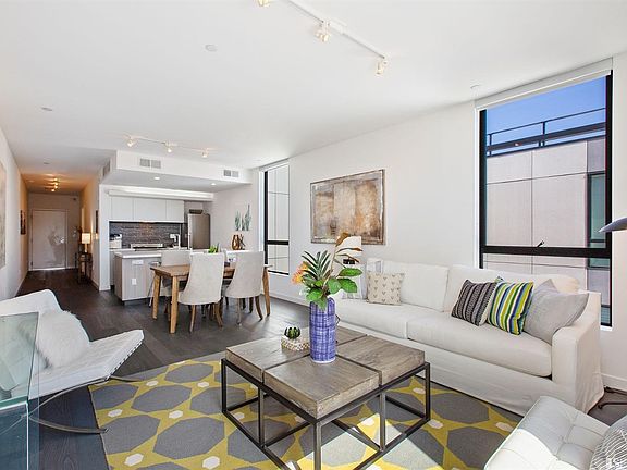 Located on the top floor of a luxury building designed by renowned architect Stanley Saitowitz, unit 509 is the epitome of stylish city living. This penthouse welcomes you with natural light, designer finishes, and the highest attention to detail throughout. Perfect for entertaining, the open living/dining area boasts southern and eastern facing views, and is connected to the Chef's kitchen with large breakfast bar. This designer kitchen includes gorgeous backsplash, counters, and high-end appliances. Both spacious bedrooms offer direct access to modern bathrooms and ample closet space. Central A/C & Heat, In-unit laundry, 1 car garage parking, and storage unit complete this home. Enjoy access to a shared roof deck with panoramic city views. 97 Walk Score, 100 Transit Score, and 99 Bike Score. Heart of the Mission, close to BART, MUNI, shuttle stops and the freeway. Welcome to life in the Mission!