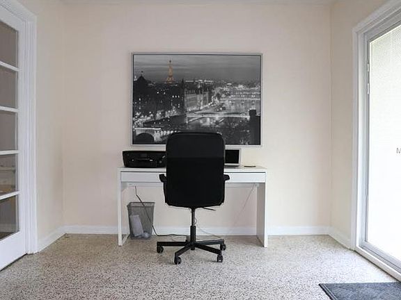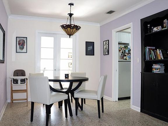 * Adorable Concrete Block Home features a Hip Roof (good insurance rates) and Mid Century Modern Terrazzo Floors and Glass Kitchen Door Cabinetry * Rare Crown Molding and matching Door Casing * Public Tennis Courts and small City Park nearby * Features newer Central Air and Heat and a Fenced Real Yard (two of the three sides are owned) * Florida Room presently being used as a Master Bedroom *