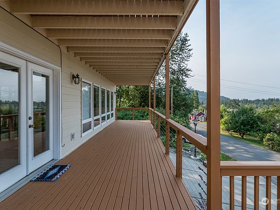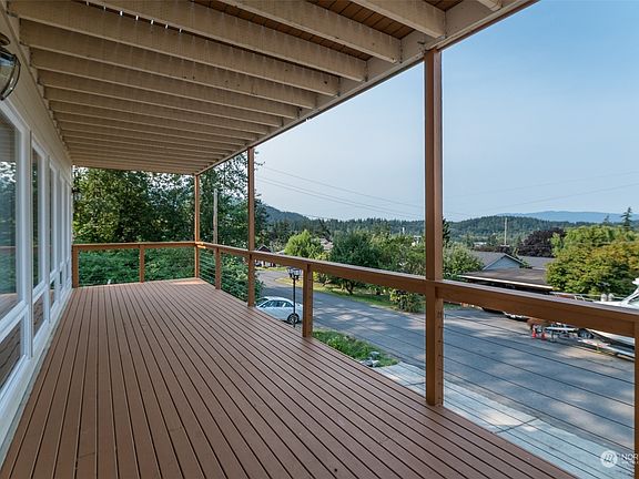 Custom home w/ Bay & Island view. carpets, hardwood floors. Oak cabinets throughout. Main floor w/ gas fireplace, living room w/ vaulted ceiling, deck & kit. w/ bay & garden windows. Upper-level w/ master suite, loft/family room & decks. Master bedroom with wood fireplace & walk-in closet. Master bath w/ jetted tub, Bay view & separate shower. The lower level has a studio/3rd bedroom with a Murphy Bed and 2 car garage with cabinets for storage. Terraced, park-like yard w/ playhouse, concrete b-ball pad & patio. Wired for backup generator. Lo Emission gas furnace and ozone air purifier with electrostatic filter. It also has an outbuilding/playhouse with a deck.