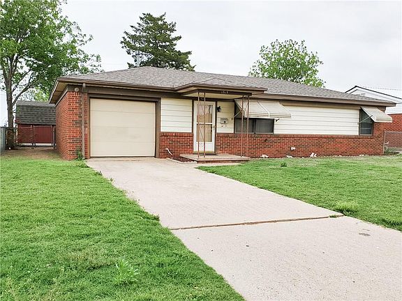 This just the right size home has 2 bedrooms, 1 bath & 1 car garage. The living area has more than enough natural light coming in from the two windows, the kitchen has plenty of cabinet space and is open to the dining area. With no houses or buildings behind this home you and loved ones will enjoy beautiful sunrises from the spacious backyard surrounded with a chain link fence. Everyone will be sure to feel safe having the large storm shelter and will appreciate the extra storage space in the cute backyard red barn.