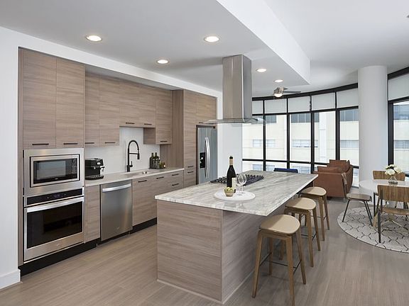 - Exterior features: , 10-foot ceilings, 42-inch upper cabinets, Balcony, Barbecue, Bicycle storage, Bookshelves, Bright Contemporary Finish Scheme, Business Center, Catering Kitchen, Clubroom, Concierge, Corner apartment, Courtyard, Decorative bath vanity lights, Designer bath hardware, Designer plumbing fixtures, Double-sink vanity, Dry bar, Executive Boardroom, Fitness Studio Includes TRX, C, Flex space, Guest Room, Hardwood-style flooring, Kitchen island, Kitchen window, LED lighting, Meeting rooms, No balcony, Outdoor Terrace, Package Receiving, Pendant lighting in kitchen, Porcelain tile backsplash, Powder room, Quartz countertops, Quartz kitchen backsplash, Rooftop terraces, Skylounge, Soft-close cabinetry, Solar shades, Stainless steel appliances, Stand alone shower, TV Lounge, Tub/shower combo, Under-counter lighting, Undermount sinks, Valet Dry Cleaning, View Type: Downtown Views, View Type: Downtown view, Warm Modern Finish Scheme, Whirlpool appliances, Wi-Fi in Public/Common Areas, Wi-Fi in common areas, Yoga and spin studio with on-demand virtual traine