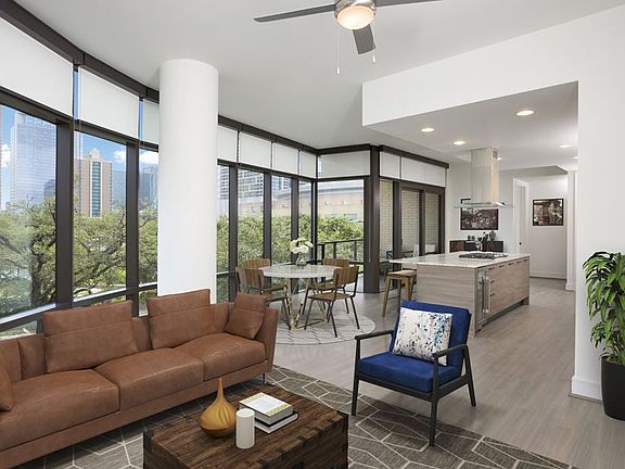 We offer live video, self-guided, and team member tour options. Please call 24 x 7 to schedule. Contact us today and ask about our rent specials on select apartments! Located in the heart of Houston, Texas, Camden Downtown Houston's high-rise apartments offer luxury studio, one- and two-bedroom apartment homes perfectly located off Austin Street, within walking distance of the Toyota Center. Our A8, A14, A15 A16, and B7 floor plans feature a unique flex space perfect for a home office. Experience the ultimate urban lifestyle, stress-free commutes, world-class amenities, and the best luxury apartments in Downtown Houston. Camden Downtown Houston is in a prime location with direct access to the METRORail, and easy access to I-45, I-10, 288, and US-59. Each luxury apartment home is designed with high-end finishes, stainless steel appliances, and spacious layouts for entertaining. This pet-friendly, non-smoking community has a 9th-floor pool with an aqua lounge, a fitness center with cardio, free weights, virtual training, and skyline views from the 21st-floor social lounge. Come by today and experience the difference at Camden Downtown Houston. As an Airbnb-friendly community, residents can host their apartment home on Airbnb part-time, up to 90 days per year. (Hosting is subject to local laws and regulations.) Camden residents can take advantage of an exclusive discount with CORT to rent furniture and accessories for your apartment home. We partner with Vero, a third-party screening company, to verify the identity and income of all applicants. We partner with Vero, a third-party screening company, to verify the identity and income of all applicants. Pricing and availability are subject to change until a quote is saved.