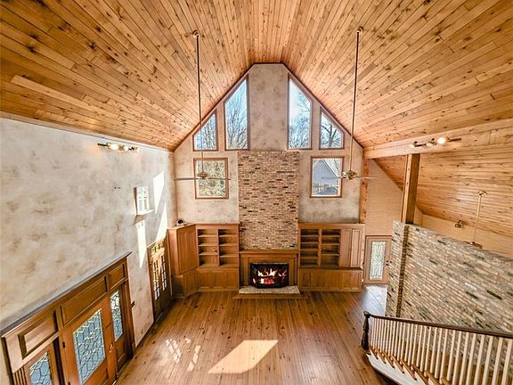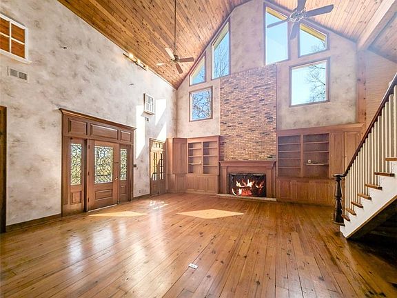 This stunning custom-built home that sits on 6.85 acres offers a serene retreat with a creek flowing through the property. Crafted with exquisite attention to detail, the residence showcases rich heart of pine, mahogany, and cypress wood throughout, creating a warm and inviting ambiance.