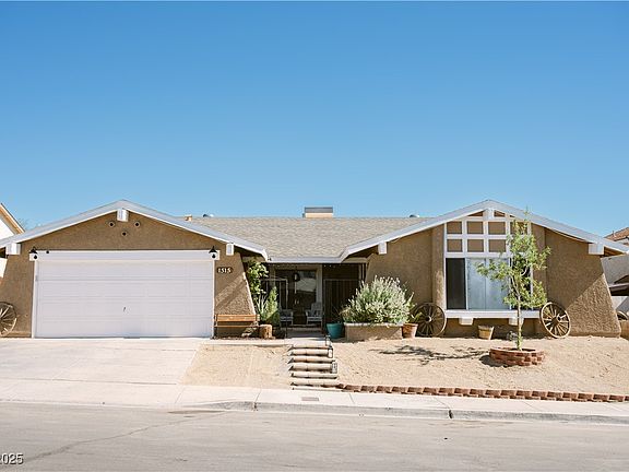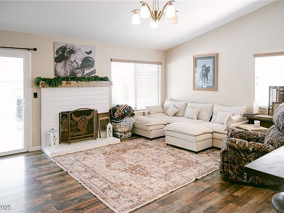 Welcome to this one-story home located in beautiful Boulder City featuring thoughtful upgrades throughout! This 3-bedroom, 2-bath residence offers beautifully remodeled wood-look flooring throughout with a tile entry. The kitchen showcases updated butcher block countertops, white painted cabinets, and stainless steel gas stove and dishwasher. Enjoy a spacious layout with both a living room featuring a brick fireplace and a separate front living room. Recent system updates include a new water heater (2025) and an AC unit (2021). The backyard features a large covered patio and inviting yard surrounded by desert landscaping. A two-car garage adds convenience and extra storage.