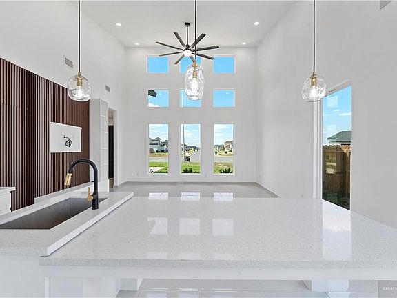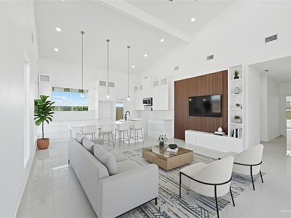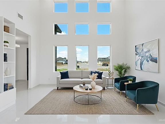 Step into this elegant 2025 new construction home in the growing city of Hidalgo, TX. Designed for modern living, this 3-bedroom, 2.5-bath home spans 1,740 sq ft and features high ceilings, sleek porcelain tile, and natural light throughout. The open-concept layout connects a custom kitchen—complete with premium cabinets, quartz countertops, and a spacious island—to the dining and living areas, creating the ideal space for daily life and entertaining. Smart home tech lets you control lighting, temperature, and security with ease. The master suite features a double vanity and a luxurious walk-in shower, while the secondary bedrooms offer generous space for family or guests. Outside, the patio slab is perfect for weekend gatherings. As the first home you see entering the subdivision, its bold design and curb appeal make it stand out. Schedule your private showing today and experience the perfect blend of technology, design, and comfort in this Hidalgo home.