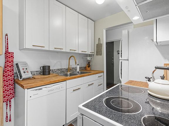 South-facing top-floor homeEasy-care laminate flooringModernized kitchenVaulted ceiling and window