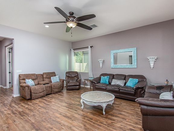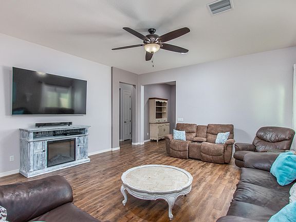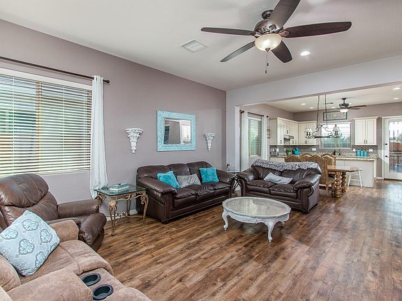 You'll love this beautiful home offering 3 bedrooms + den with double doors & 2 baths in 2055 SqFt with an open great room floor plan & split bedrooms. The kitchen features upgraded cabinetry with crown molding, granite countertops, subway tile backsplash, stainless appliances & island with breakfast bar. The backyard was designed for entertaining with an extensive paver patio, built-in BBQ island with counter seating and low-maintenance artificial turf & desert landscaping. No backyard neighbors, either! The spacious master retreat has a private bath with dual sink vanity, separate tub & shower with rain shower head and walk-in closet. Secondary bedrooms also have walk-in closets and the hall bath has double sinks. Other features include an oversized 2 car garage with service door and*