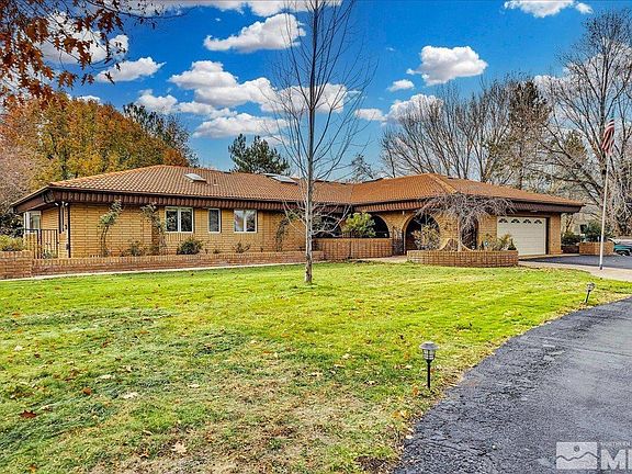Experience exceptional living in this charming Spanish-style home, located on a peaceful street near the scenic Carson River and Carson Valley Golf Course. Upon entering, you'll be captivated by the abundance of windows throughout the main living area, which allow natural light to flood in and frame the picturesque, park-like setting outside., The open-concept kitchen has been updated and features stainless steel appliances, granite countertops, and an eat-in island. It seamlessly flows into the family room, which includes a wood-burning fireplace, creating a warm atmosphere that is perfect for cozying up during the colder months. The generously sized primary suite boasts private access to the backyard through a glass slider. The large bathroom includes a soaking tub, a vanity with double sinks, an easily accessible walk-in shower, and a bidet. Outside, the stunning grounds are sure to impress - secured by elegant iron gates, providing privacy and peace of mind. The spacious grassy lawn is perfect for outdoor activities, while an extensive patio creates an inviting space for relaxation, entertaining, and enjoying nature. You'll also appreciate the convenient storage options available and ample RV and boat parking, making it easy to accommodate all your recreational needs. This backyard is not just a retreat; it's an extension of your home where you can create memories with family and friends. Don't miss the opportunity to own this remarkable property that combines style and comfort! Set up your showing today.