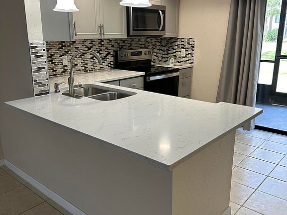 Come step into a carefree lifestyle here at Regency Pines in Rockledge. This beautifully updated 2-bedroom 2 bath Ground Floor Condo with Carport boasts tile flooring throughout. With an open living space and sliding glass doors from the back of the unit this open floor plan is truly a rarity! Luxurious Quartz Countertops with extended counter for barstools, Gorgeous Gray Shaker Style Kitchen Cabinets with plenty of storage and pull outs inside the cabinets, built in pantry, and stainless-steel appliances truly make this the perfect kitchen to entertain! The Primary is spacious with its own en-suite bathroom making it your own personal retreat! With the convenience of the laundry being in the unit and an additional insulated storage closet on the screened in porch the unique features of this condo are endless. Sit on the screened in porch and enjoy your morning coffee while enjoying the peace and tranquility of the Florida Lifestyle. The Monthly Fee Includes Cable TV, Water, Sewer & Pest Control making this relaxed lifestyle come to fruition.