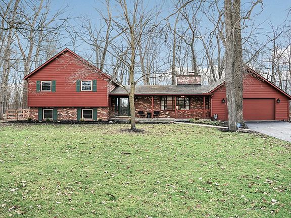 Relax & unwind at this 4 BR/ 3 Full BA 4- Level split Choctaw Lake home on double lot, newly fenced yard backs to farmland! LR w/huge bay window & double sided brick frpl leads into DR w/ pegged hardwood floors & beautiful new chandelier . Kitchen w/updated S/S LG appl's, solid surface counters & room for eat in area. Huge 3 season room & paver patio great for entertaining! Upper lvl Owner suite w/priv balcony has ensuite bath w/ dbl vanity & walk in shower + wait till you see the HUGE walk in closet w/ builtins , 2 more BR's & full bath finish this level. Lwr lvl has daylight FR w/stone frpl, separate office space, 1 BR & Bath. Basement lvl is multi use room great for gym, Large unfnsh storage area w/stairs to 2 car gar, Enjoy the lakes wonderful amenities this summer! See A2A