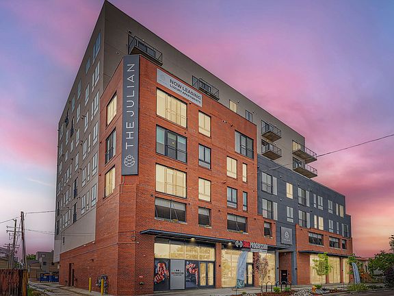 The Julian, located at 1515 Julian Street in Denver's vibrant West Colfax neighborhood, offers a contemporary living experience that combines modern comfort with city convenience. With thoughtfully designed studio, one-, and two-bedroom apartments, this community features open floor plans, high-end finishes, and plenty of natural light. Residents enjoy amenities like a rooftop deck with stunning mountain and city views, a state-of-the-art fitness center, and easy access to nearby dining, shopping, and entertainment options. The Julian is perfect for those looking to immerse themselves in Denver's dynamic urban culture while enjoying a relaxed, sophisticated home environment.