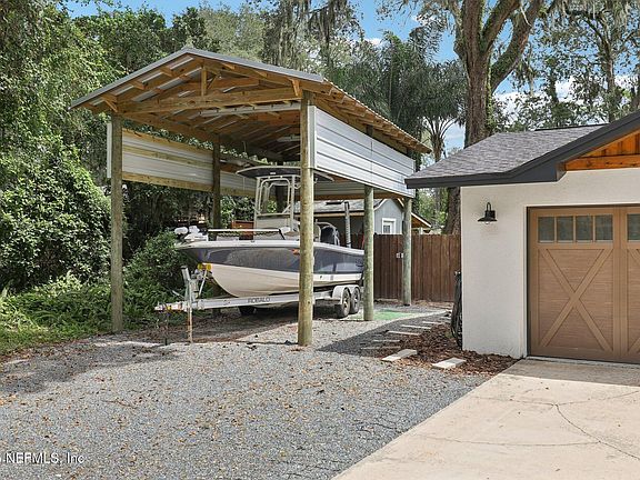 The nearly half-acre backyard is designed for entertaining with a saltwater pool, paver patio, fire pit, outdoor bar, chicken coop and self-cleaning koi pond. Additional features include an RV/boat carport, utility shed, pool shed, circular driveway, new roof, and new windows. Location highlights: Just a bike ride to the beach or a short afternoon stroll to Hopkins Creek to enjoy sunsets or afternoon fishing. Situated near great school options, this home combines luxury, comfort, and an ideal Neptune Beach lifestyle.