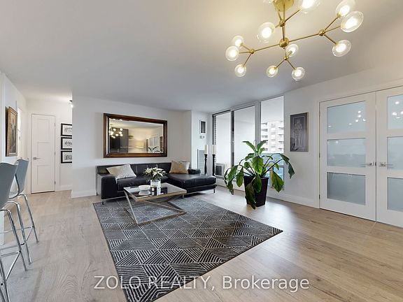 RARE OPPORTUNITY: stunning 15th-story Suite with a spectacular view of the Toronto Skyline and Lake Ontario, offers 1,400 sq. ft plus, with the 10.5 ft x 10.5 ft balcony, 3-bdrms plus den. The den is currently used as an office. Professionally Renovated with a designer touch. Entertainer's delight open concept kitchen: combination of white and high-end kitchen cabinets, with a large centre island, breakfast bar, waterfall countertop, equipped with stainless steel appliances. Light wood flooring thru out, carpet-free condo. High-end fixtures in the kitchen and both baths, the inspiring ensuite bath off the primary bedroom has a inviting glass shower. Tranquil view of the Toronto Golf Club, Toronto Skyline from the bedrooms, and Lake Ontario from the balcony. Please show this condo to your Most Descerning Clients. Includes Cable TV, Heat, A/C, Hydro, Water, Indoor Salt Pool, Whirlpool, Exercise Rm, Party Rm,Tennis & Squash Court, Visitor Parking, Activity Groups & More. LOCATION - LOCATION: Miles of walking and biking trails at your door step, along the lakefront parks and Etobicoke Creek. Easy access to QEW & Hwy 427. Commuters can walk to GO train, TTC bus and street car loop. A short stroll to the Farmer's Market and Antique Show at the Small Arms Building. The future Lakeview Village development nearby is transforming this area into a vibrant, sustainable and interconnected neighbourhood. No Dogs permitted as per By-Law.