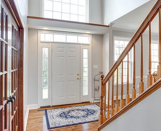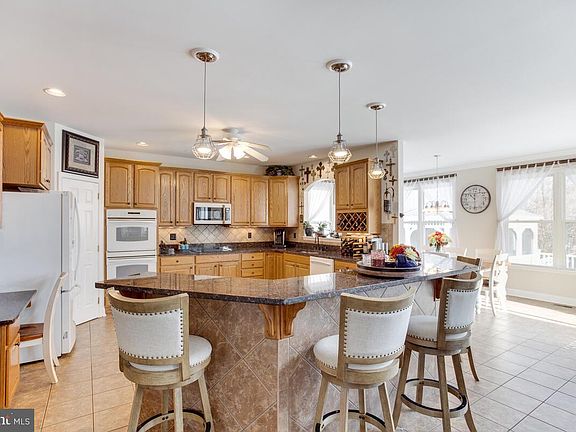 Located on a cul de sac in the sought after Queensberry neighborhood in the Huntingtown High School District, this magnificent Colonial offers four levels of spacious living. This home offers a great deal of privacy as you pull down your long driveway with brick pillars and outdoor lighting. There's plenty of parking to accommodate many visitors. Greet guests in your two story foyer with hardwood floors, there's a spacious dining room with crown moulding, chair railing & hardwood floors, adjacent you will find a spacious living room with hardwood floors and double doors for privacy. The grand gourmet kitchen has an abundance of space for entertaining. You'll find a huge breakfast bar, granite counters, wall ovens, built in microwave, oversized refrigerator, wine racks, a huge pantry as well as a separate breakfast/sunroom with lots of natural light, all with ceramic tile floors. There's a large great room with floor to ceiling stone (propane) fireplace and ceramic floors. The doors off the kitchen lead to a huge deck, gazebo and hot tub where privacy abounds. There's plenty of outdoor lighting as well as electrical outlets for your convenience. Telecommuting has never been made so easy in the spacious office just off the great room. There's also a half bath. There are two sets of steps leading upstairs where you'll find a master suite with sitting room, a master bath, soaking tub, spacious double shower and walk in closet. There are three additional bedrooms, two that share a jack N Jill full bathroom with one of the rooms having a walk in closet. Your 3rd story apartment will be desired by all and offers a full bath and closet space. There's a full unfinished walk out English basement with a rough in for a full bath that awaits your design. The first floor features 9 ft. ceilings except where the two story foyer and family room are located. The basement offers 8 ft. plus ceilings. This property is simply one of the best lots in Queensberry and offers a wealthy of privacy. There's also a full sized shed with electric for all your gardening needs. You'll also find an outdoor sprinkler system. This home has been professional cleaned, has fresh paint on many of the walls and is ready for your move in! Call. today to schedule your showing appointment.