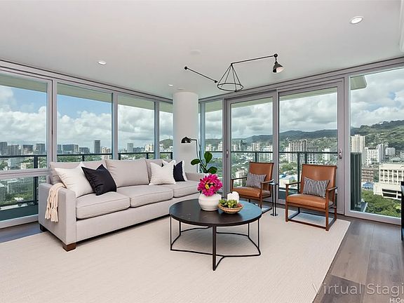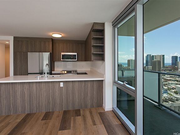 Enjoy stunning wrap around views of Honolulu (mountain, city and partial ocean) from this never lived in, brand new 22nd floor, 2-bedroom, 2-bath corner unit with a spacious wraparound lanai - the perfect setting for morning coffee or evening sunsets. This unit features upgraded luxury vinyl flooring that flows from the living room area into both bedrooms, creating a cohesive space throughout. Inside, an open-concept floor plan with floor-to-ceiling windows fills the living spaces with natural light. As part of Honolulu's newest lifestyle destination, residents enjoy resort-style amenities (infinity pool, spa, BBQ grills, gym, etc), secure entry, and an unbeatable location - just minutes from Ala Moana Center, Waikiki, and some of the island's best dining, shopping, and entertainment.