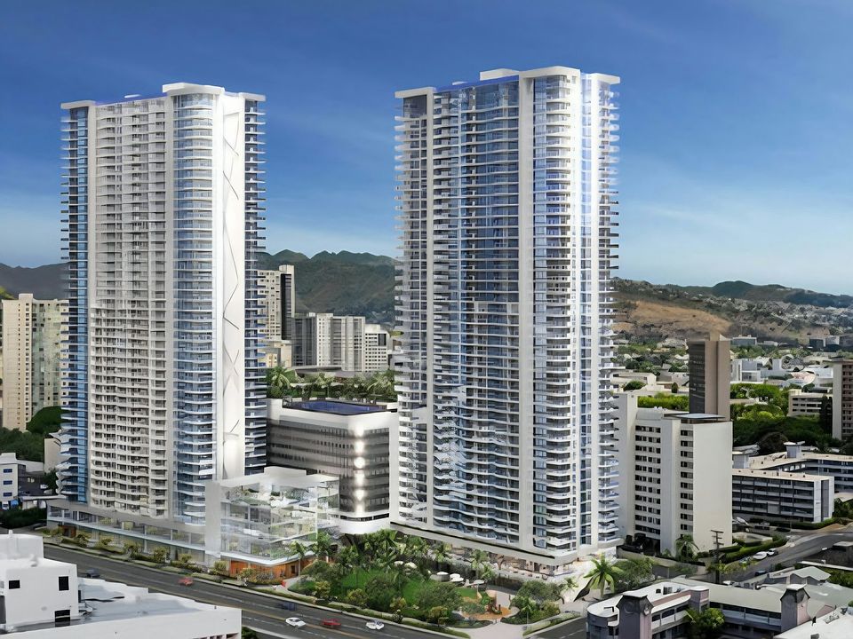 Experience modern urban living in this brand-new, never-lived-in 2 bedroom/2 bath residence with 1 parking stalls at The Park on Keeaumoku. This thoughtfully designed home features floor-to-ceiling windows, luxury vinyl plank flooring in living room, split A/C, washer/dryer, and a private lanai with city views. Residents enjoy resort-style amenities including an infinity pool & spa, BBQ pavilions, fitness center, yoga studio, sauna, theater, and stylish clubrooms. Conveniently located near Ala Moana Shopping Center, Sam's Club, Walmart, and restaurants. Tenant responsible for electricity and must provide renters insurance. Service and emotional support animals must be disclosed with the application. No pets, no smoking.