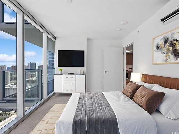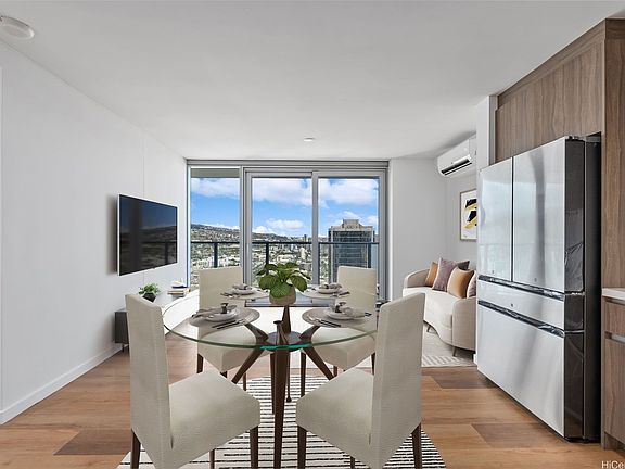 BRAND NEW LISTING!! Liona 3607 at The Park on Keeaumoku offers a stunning one-bedroom residence with a private lanai - Diamond Head view and sunrise, perfect for enjoying Honolulu's urban landscape. This unit features an open-concept living area with luxury vinyl plank flooring and floor-to-ceiling windows that maximize natural light and views. The kitchen is designed with quartz countertops, modern plumbing fixtures, and sleek stainless steel appliances, making it both functional and stylish. The bedroom is a cozy retreat with carpeted floors for comfort, while the bathroom is equipped with quartz countertops, modern fixtures, and LED medicine cabinets. A quiet, energy-efficient split AC system ensures a comfortable climate throughout the home. The building provides resort-style amenities including an infinity pool, spa, movie theater, fitness center with a sauna and yoga room, and private BBQ pavilions. With 24/7 security, secured covered parking, bike storage, and EV charging stations, this pet-friendly unit is an ideal blend of luxury, convenience, and modern living. Don't miss this great Opportunity!!! A few photos have been virtually staged(enhanced).