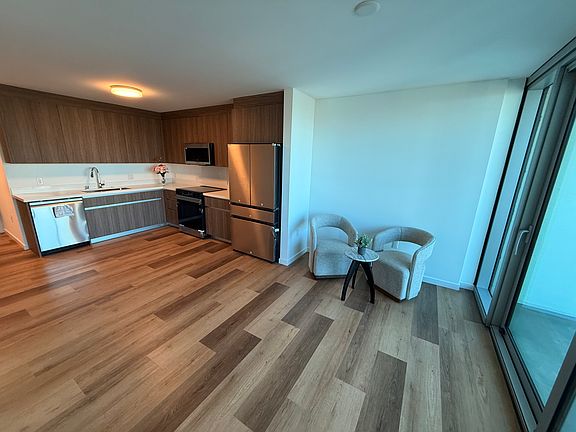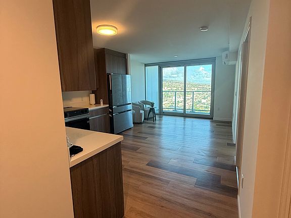 High floor unitSpacious lanaiFloor-to-ceiling windowsStainless steel appliancesWasher and dryer in-unit