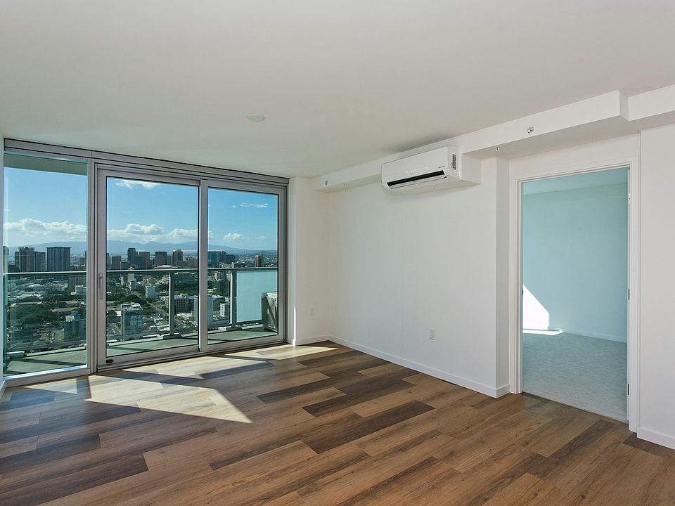 Experience modern urban living in this brand-new, never-lived-in 2 bedroom/2 bath residence with 2 parking stalls at The Park on Keeaumoku. This thoughtfully designed home features floor-to-ceiling windows, luxury vinyl plank flooring in living room, split A/C, washer/dryer, and a private lanai with city views. Residents enjoy resort-style amenities including an infinity pool & spa, BBQ pavilions, fitness center, yoga studio, sauna, theater, and stylish clubrooms. Conveniently located near Ala Moana Shopping Center, Sam's Club, Walmart, and restaurants. Tenant responsible for electricity and must provide renters insurance. Service and emotional support animals must be disclosed with the application. No pets, no smoking.