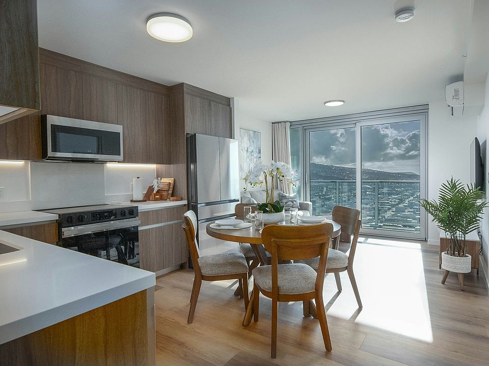 Experience modern island living in this brand-new, never-lived-in 1 bed / 1 bath condo at The Park on Keeaumoku! Located on the highly desired east-facing side, this stylish residence offers refreshing breezes and breathtaking views of Diamond Head, the ocean, and the city skyline from your private lanai. Step inside to discover floor-to-ceiling windows, an open-concept kitchen, luxury vinyl flooring, split A/C, an in-unit washer and dryer, and custom window shades. The unit comes fully furnished and includes one covered parking stall for your convenience. Cable and internet are included. Enjoy resort-style amenities such as an infinity pool and spa, BBQ pavilions, fitness and yoga studios, sauna, theater room, and elegant clubrooms. Perfectly situated in the heart of Honolulu, this residence offers a car-free lifestyle, just minutes from Ala Moana Shopping Center, Kakaako, Waikiki, Sam's Club, Walmart, and countless dining and entertainment optionscombining comfort, luxury, and convenience in one exceptional location. No pets or smoking. Tenant responsible for electricity and renter's insurance. Service or emotional support animals must be disclosed with the application.