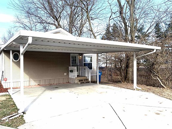 Very well maintained double wide manufactured home with 3 bedrooms, 2 baths, all appliances stay. Covered 2 car carport, with Shed, backs to woods, very private. 1 yr warranty on mechanicals and appliances(accept washer and dyer) to be in working order. Brand new vinyl plank flooring just installed. Quiet senior community, must be 55+, garbage included in lot lease. Must submit application upon accepted offer.