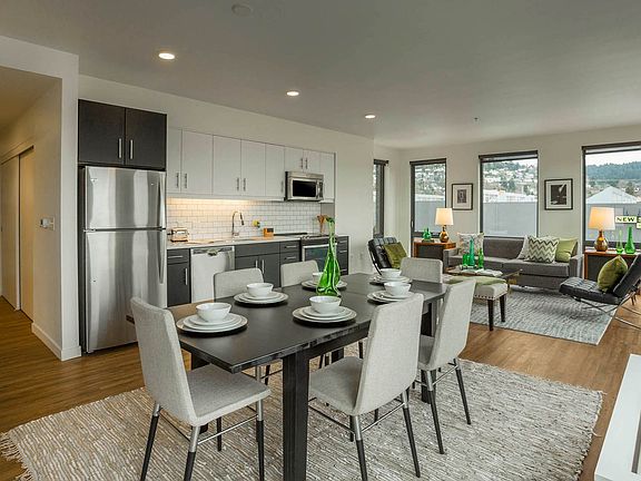 - Exterior features: BILT Rewards, Electric Vehicle Charging Stations, Fiber Optic 1 Gig Internet Available, Pet-Friendly, Quartz Countertops, Stainless Steel Kitchen Appliances, Studio, 1 Bedroom & 2 Bedroom Apartment Homes, Subway Tile Backsplash, View Type: Oversized Windows with Spectacular Views