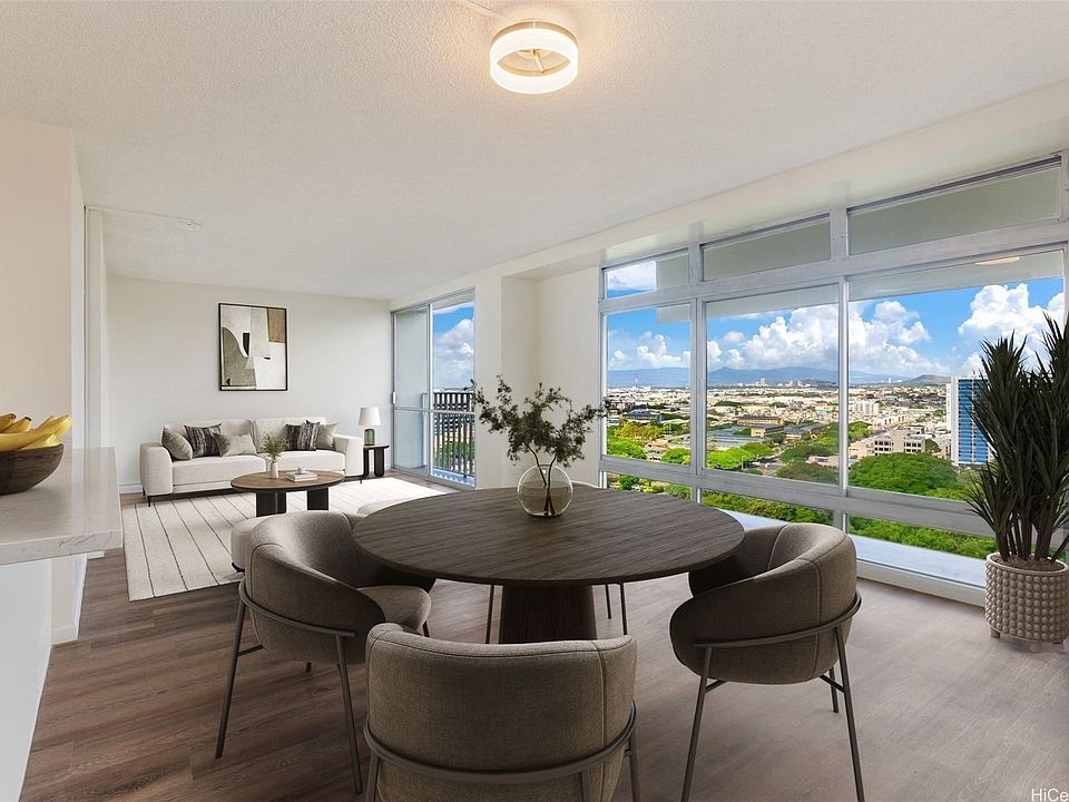 Take in the beautiful 20th floor city and mountain views overlooking Foster Botanical Gardens. Queen Emma Gardens is a pet-friendly community offering wonderful amenities, including Japanese-style tea-houses, swimming and wading pools, a tranquil koi pond, BBQ area, and picnic sites, all in a convenient location near downtown Honolulu, shopping, and dining. Put this on your must-see list! One or more photos have been enhanced.